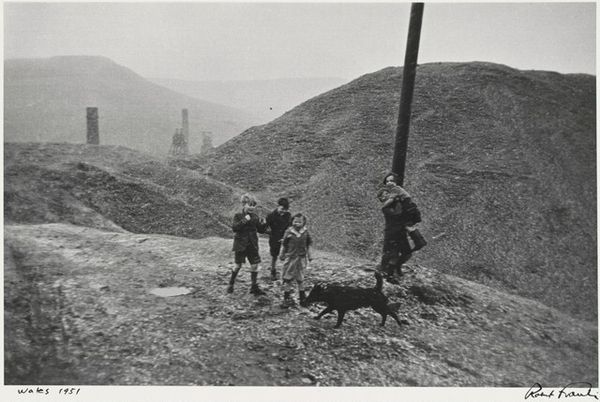 "Caerau, Wales" was made in 1951 by Robert Frank using photography. Look at the way Frank creates tone through the stark contrast of light and shadow, it feels brutal, like a woodcut. There’s an immediacy to his work, a sort of snapshot aesthetic, that almost feels like a sketch. I’m struck by the way the composition divides the space, that wall looming on the left, a hard edge meeting the flow of the street. The figures are pressed up against it, while the street is dominated by the dog running free, a symbol of something? Frank’s black and white has this incredible range, from the deep matte blacks to the shimmering grays in the wet street, all of it grainy and raw. It doesn’t hide anything. Frank always reminds me a little of Walker Evans, a shared interest in the everyday, but Frank had a more European sensibility, a darker vision. This image, like all great art, resists easy answers, and invites endless contemplation.