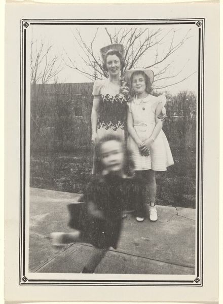 Editor: This is "Klaas en Tiny Kleiterp bij een huis in Adiwerna op Java," a photograph from 1925 by Klaas (I) Kleiterp. There's a certain stillness, a kind of quiet melancholy in this realist portrait. It’s as if we've caught these children lost in their own worlds. What's your read on it? Curator: Ah, a stolen moment frozen in time! You know, to me, this isn't just a photograph, it's a poem. The monochrome palette heightens the sense of nostalgia, wouldn’t you agree? Notice how their averted gazes pull us into their private world. It whispers tales of childhood in a colonial landscape – Java, 1925. I wonder, what were they thinking? Editor: I hadn't considered the colonial aspect so directly, but that definitely adds another layer. It's interesting how their European clothes contrast with the Javanese house in the background. Curator: Exactly! A beautiful collision of worlds. Maybe the photographer was trying to capture the feeling of being in between two cultures. Don’t you think their postures speak volumes? The one on the left, head bowed, perhaps overwhelmed? And the other standing straight but gazing elsewhere, maybe longing for something? What a dance of innocence and unspoken realities. Editor: It makes you think about what it must have been like for children growing up in that specific time and place. Curator: Absolutely. It's more than just a pretty picture; it’s a portal. Art at its finest offers that, a little time-travel, wouldn't you say? Editor: I’ll definitely look at portraits differently now, thinking about the unseen stories behind them. Curator: That makes my heart sing. That’s the magic of art, isn't it? To open our eyes and hearts to stories waiting to be told.