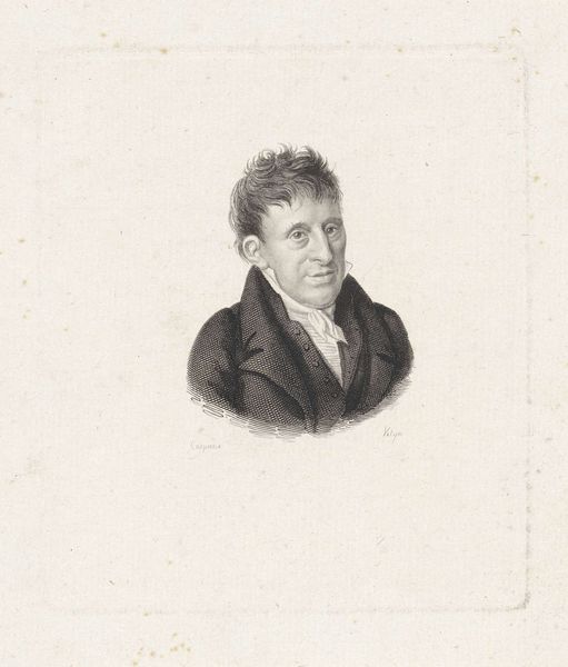 Editor: We are looking at "Portrait of Christian Henning", likely created between 1751 and 1822, with pen, pencil and ink. It looks very simple, but the lines seem to capture his likeness with a rather earnest quality. What compositional elements stand out to you? Curator: The efficiency of line is compelling. Note the stark contrast between the lightly sketched face and the more heavily rendered coat. The artist employs varying line weights, creating depth and emphasizing the subject’s gaze. The lack of background removes any external narrative, focusing solely on the form. Editor: Do you think that lack of background enhances the feeling that we’re seeing him as he is? Or does it leave you wanting more? Curator: Interesting. Does the truncation suggest an unfinished quality or perhaps point to a focus on capturing pure likeness? Semiotically, the fragment emphasizes essence over context, challenging our impulse for complete representation. Consider also how the economy of detail draws attention to the rendering of the face and his eyes, which become all the more present by contrast to the void. Editor: So, by stripping away the context, the drawing pushes us to see and understand the person being represented more deeply, right? Curator: Precisely. Through reduction, the artist invites closer scrutiny of form and line, inviting us to decode its visual language. Editor: That’s really insightful; looking at the contrast now, I do notice things that I hadn’t paid much attention to before. Curator: Indeed. It's through examining these structural relationships and deconstructing form that we may discern deeper meanings.