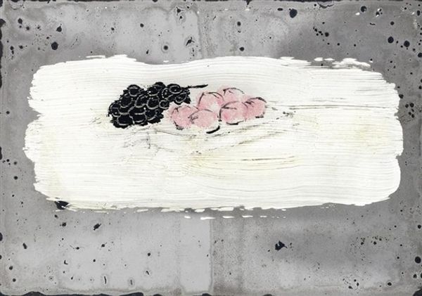Editor: So this is Sergio Mario Illuminato’s "Balloon Seller" from 2019, done in mixed media, incorporating acrylic and watercolors. It strikes me as both playful and a little unsettling with that small golden figure seemingly suspended. What's your take on this piece? Curator: It’s interesting how you read the figure as suspended. To me, that immediate sense of lightness belies a commentary on contemporary labor, particularly in the gig economy. Those balloons, rendered as dark, weighty orbs, feel less like symbols of joy and more like burdens. Editor: Burdens? I hadn’t thought of it that way. Is it the choice of the darker colors that suggests that, or something else? Curator: The color absolutely contributes, but consider the figure’s posture – almost hunched, struggling against this cluster of dark “balloons”. What does it mean to be tethered to something that appears light but is, in fact, oppressive? Think about the social and political context: in 2019, precarious labor was already a hot topic, fueled by anxieties around automation and the changing nature of work. Editor: So you're suggesting the artwork engages with this narrative by inverting the common symbolism of balloons? Making them represent constraints? Curator: Precisely! And what of the "seller" in the title? Who buys these “balloons?" Is it a willing transaction, or one driven by necessity? The artwork raises questions about agency, economic pressures, and the performative nature of happiness often associated with consumer culture. Editor: I see. That makes me think about how advertising pushes this image of joy through consumption, even if the reality is quite different for the people producing these goods or services. Thank you, I never would have looked at it this way! Curator: It’s all about recognizing how art reflects and critiques the power structures around us. Glad I could offer a new perspective.