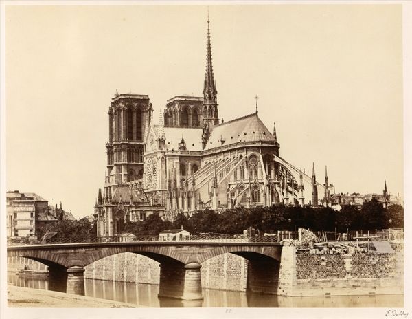J. Kuhn's photograph captures the Notre-Dame Cathedral in Paris, presenting a study in tonal range and architectural form. The sepia tones evoke a sense of history, bathing the scene in a warm, almost nostalgic light. The composition emphasizes the cathedral's towering presence. Kuhn uses the Seine and the bridge as horizontal anchors, which contrast with the vertical thrust of the cathedral's spires. The bridge leads the eye towards the intricate details of the cathedral's facade, a complex layering of Gothic elements which speak to the era's architectural ambition. Consider how the interplay between light and shadow creates depth, accentuating the texture of the stone. The photograph isn't just a record; it's an interpretation of space and form, inviting us to consider how perspective shapes our understanding of monumental structures. It shows the play between the natural and the constructed, questioning fixed notions of space and representation.