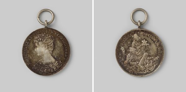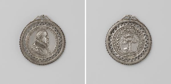 This silver pendant at the Rijksmuseum portrays Willem V and Wilhelmina van Pruisen in profile. The anonymous artist has meticulously rendered the portraits in a low relief, contained within oval frames. Notice how the structure of this pendant emphasizes symmetry through its composition, but also contrasts, by portraying the different subjects on each side. One side depicts Willem with detailed, though rigid, clothing. The other, Wilhelmina, is shown wearing a helmet. This deliberate contrast creates a dialogue around power and gender roles. The framing of each portrait, through the textured borders and the very shape of the oval, is like a semiotic boundary marking individual identity while both are physically bound together within a single object. Consider how the craftsmanship and the use of a precious metal elevate the subjects, turning personal likeness into a symbol of status. In its totality, this pendant serves not only as a piece of adornment but as a carefully constructed signifier of rank.