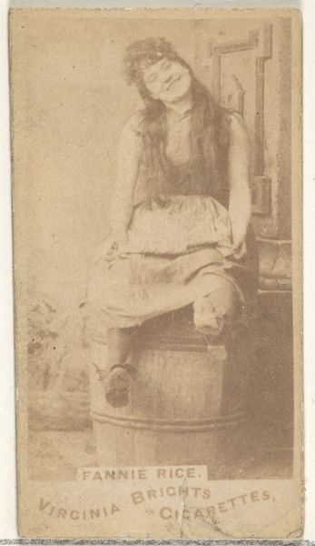 This is "Miss Lee, from the Actresses series (N203)", a photograph issued by the Wm. S. Kimball & Co. cigarette company. These cards, popular in the late 19th century, offer us a window into the era's commodification of identity and celebrity. The "Actresses" series, of which Miss Lee is a part, highlights the burgeoning role of women in the public sphere, yet it simultaneously confines them to objects of consumption. Note the sensual pose: her bare arms, and the skirt hiked high above her knees. The images walk a tightrope between empowerment and exploitation, reflecting the complex negotiations of gender roles at the time. Consider how the economics of tobacco intersect with the representation of women. These cards, distributed with cigarettes, encouraged both the consumption of tobacco and a particular vision of femininity. What does it mean to have a person's image, identity, and persona become a selling point? How does the mass distribution change our relationship with ideas around identity?