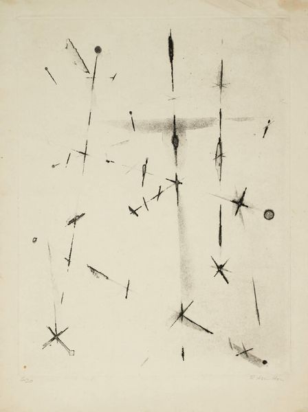 This print, “Hands,” was made by Billy Morrow Jackson; it's a little puzzle made with ink on paper. The marks are so direct, so un-fussy, like Jackson was thinking out loud with his pen. Look at the hand at the bottom holding a stick that sprouts into rays; it's so awkward and charming. The lines are uneven, and the shapes are more felt than observed. It reminds me of Cy Twombly’s scribbles, how a simple line can be so full of energy and feeling. There's something deeply human about these imperfect marks, the way they capture the essence of a hand without getting bogged down in detail. It's not about showing off skill; it's about the raw, unfiltered expression of an idea. I love that Jackson lets the process be visible, like a conversation between the artist and the paper. It feels like an intimate glimpse into Jackson's mind, a space where seeing and thinking become one.