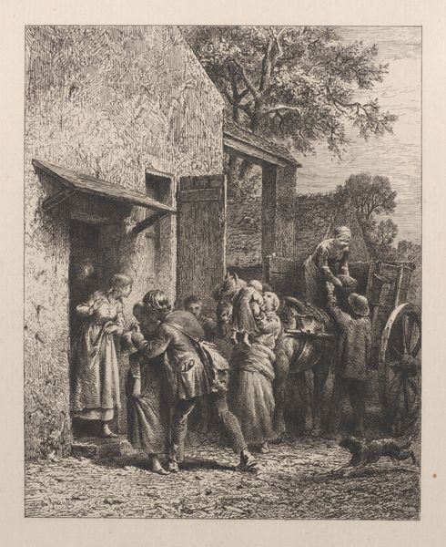 Christoffer Wilhelm Eckersberg captured this scene of two women conversing on a street corner, using pen and brown ink. The raised hand, a recurring gesture, draws our attention. Consider the power of a hand, raised in discourse. Throughout history, this motif appears, signifying emphasis, instruction, or even debate. We see echoes of it in classical oratory, where the speaker's gestures amplify their words, striving to impress upon the audience. It has roots in ancient rhetoric, flourishing in Renaissance paintings, each iteration layered with cultural weight. The simple act of conversation, underscored by the raised hand, transcends mere communication. It becomes a potent symbol of human connection, debate, and the transmission of ideas, engaging us on a subconscious level and reminding us of the enduring human need to connect. A symbol passed down through time.