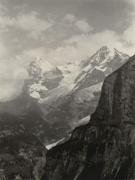 Arthur Gabler created this photograph of the Eiger in the Bernese Alps using a black and white printing-out paper process. This period saw photography gaining traction as both an artistic medium and a tool for documentation. Gabler’s choice to photograph the Eiger is noteworthy. The late 19th and early 20th centuries witnessed the growth of alpinism as a popular, yet dangerous, sport. The Eiger, with its infamous north face, quickly became a symbol of both natural beauty and the ultimate challenge. The photograph itself, with its stark contrast and focus on the mountain’s formidable structure, evokes a sense of awe and respect for nature's power. What we see is a vision of the sublime, a popular notion at the time. But it also represents a masculine ideal: the conquering of the natural world. The emotional weight of the image lies in this tension between admiration and the will to dominate. Gabler's photograph captures a moment in time when humanity's relationship with nature was being renegotiated through the lenses of science, sport, and art.