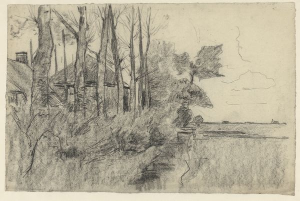 Curator: "Ville d'Avray: Boat Under the Willows (Morning Effect)," made by Camille Corot in 1857. It's an etching, currently residing at the Metropolitan Museum of Art. Editor: It's so delicate. The way the light catches the leaves... It feels almost dreamlike, capturing a fleeting moment of stillness. I like its muted quality, but there's something haunting about it, too. Curator: Indeed. The image is rich in symbols connected with a Romantic sensibility and speaks to a vision of harmonious nature: water often signals the unconscious, trees speak to longevity, renewal, and knowledge. In this piece, we might even consider the way the lone figure in the boat mediates between both states. Editor: What's fascinating to me is how Corot employed etching, which isn't always forgiving. The marks, the bites of acid – they each play a role in achieving this effect. He harnesses the materiality of the metal to describe something as ethereal as morning light, almost disguising labor through the seeming spontaneity. Curator: I would venture to suggest that we consider that choice carefully, too. As an intaglio print, this piece inherently requires an embrace of time through carefully prepared materials in order to preserve it in perpetuity, in essence. Thus, that adds depth to my thinking regarding his subject: it's all about capturing a temporal state. The symbolism extends even to how the piece functions in a practical, material sense. Editor: That reading enhances what Corot accomplished, I think. Knowing he's playing with ideas of permanence using this impermanent medium underscores a connection to mortality, the beauty we notice is also that which will pass away... That's how the symbolism emerges within the making, not separate from it. It feels both fresh and deeply contemplative. Curator: Well, I couldn't agree more! Corot encourages us to find symbolic layers within simple landscape scenes, making us more aware of how art and reality often merge. Editor: And by making us attend to the artistry involved, it shows the way materials are often quiet participants that carry their own weight of meaning within representation.