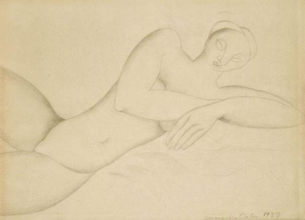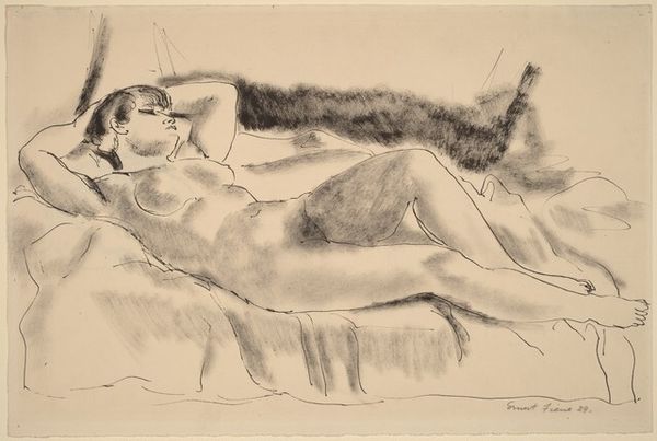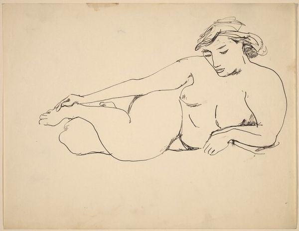 This is ‘Nu au turban,’ a drawing by Henri Matisse. The nude figure reclines in a composition that’s both relaxed and carefully constructed. Matisse employs delicate lines to define the form, capturing the softness of skin and the play of light across the body. The turban adds an exotic touch, framing the face and drawing the viewer's eye. The composition is anchored by the model’s gaze, which meets ours with an air of quiet confidence. The drawing's power lies in its simplicity. Matisse reduces the figure to its essential elements, stripping away unnecessary detail to reveal the underlying structure. This approach reflects a broader concern within modernism with the formal properties of art. Matisse encourages us to contemplate the relationship between line, form, and space, and how these elements can be used to evoke a sense of beauty and sensuality. Consider how Matisse uses line to trace the contours of the body, creating a sense of volume and depth. The drawing invites ongoing interpretation and appreciation.