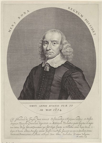 This is a portrait of Wigbold Muilman, made by John Greenwood, rendered in tones of black and white. Muilman is positioned as though he is looking out from a window frame, a weighty curtain drawn beside him. Notice how Greenwood frames his subject, using the stone window to the left to create a stark, geometric contrast with the fluid drape of fabric on the right. This tension between the rigid and the soft draws our eye to the figure of Muilman himself. The book before him is presented almost as a structural foundation, a base that supports not just his hands but perhaps also his intellectual authority. The composition invites us to consider how individuals are constructed through the spaces they inhabit and the objects they value, reflecting ideas about identity and representation that were prevalent during the Enlightenment. Greenwood’s calculated use of light and shadow adds depth, enhancing the sense of a world viewed through a very particular lens.