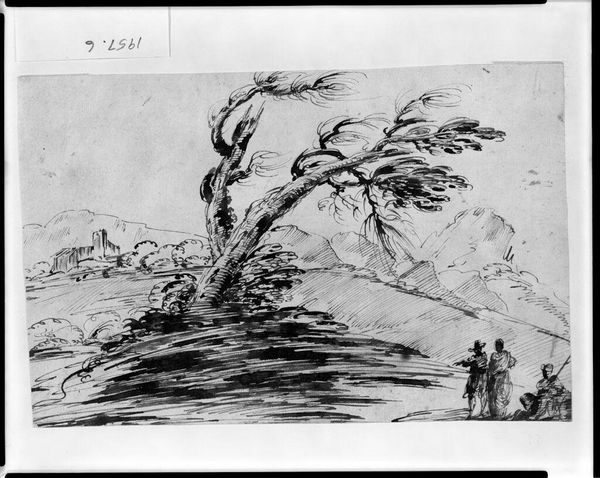 Editor: This is James Ward's "Boats and Fish," a drawing with pen and brown ink on paper. The composition is quite striking, almost dreamlike. What visual symbols stand out to you in this piece? Curator: The boats, the fish, the landscape – each carries symbolic weight. Boats often represent journeys, transitions, and the human struggle against nature. What about the fish? Editor: Well, the fish seems isolated, disconnected. Curator: Precisely! Fish are potent symbols of the unconscious, of depths unexplored. The juxtaposition here creates a tension between the human world, represented by the boats, and the mysterious realm beneath the surface. What does that tension communicate to you? Editor: It makes me think about the precariousness of our existence, constantly balanced between the known and the unknown. Curator: A keen insight. Ward uses these symbols to explore themes of human endeavor and the powerful, often indifferent, forces of nature. Editor: It's fascinating how symbols can layer so much meaning into a seemingly simple scene. Curator: Indeed. Symbols are the keys to unlocking deeper cultural and psychological understanding.