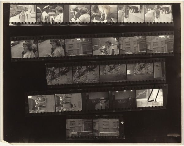 This contact sheet of Robert Frank's photographs offers a behind-the-scenes glimpse into his artistic process. It's all about the sequencing here. Each frame shows a different angle, a subtle shift in perspective. Like a painter with a brush, Frank uses his camera to explore the world, capturing fragments of reality and arranging them in a visual narrative. The grainy texture and the stark contrast between light and shadow give the images a raw, documentary feel. Look at the second row, with the crowd of people and the Chicago Express banner. It's almost like a quick sketch, capturing a fleeting moment. The physicality of the medium is evident: the edges of the film, the sprocket holes, the numbers, and the handwritten annotations. These elements remind us that photography is a process, a conversation between the artist and the world. Frank reminds me a bit of Garry Winogrand, another street photographer who captured the energy and chaos of urban life. But where Winogrand was exuberant, Frank is more introspective. He finds beauty in the everyday, in the mundane, and reminds us that art is all about seeing the world in new ways.