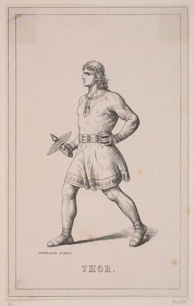 Jacques Etienne Victor Arago created this print, "Inhabitant of the island of Timor in Indonesia", using engraving. Arago's work gives us a glimpse into the visual culture of the colonial era, a time when European artists frequently depicted people from distant lands through a Western lens. This image presents us with a man from Timor, his stance and attire carefully rendered for a European audience. Consider the power dynamics inherent in such portrayals. What does it mean for an artist from one culture to represent someone from another? How might this image reflect or shape European perceptions of non-European peoples? The print provides a window into how cultural encounters were mediated and understood during a period of intense global exchange and colonial expansion. It invites us to think critically about the ways in which identity, culture, and power intersect in the creation and interpretation of images.