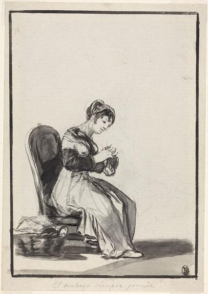 Editor: Here we have Louis Bernard Coclers' "Portret van een jonge dame met hoed in profiel naar links," created between 1756 and 1817, using pen and ink. I find the sketch intriguing, there’s a sense of fleeting elegance, and it seems very much of its time. How do you read this portrait? Curator: It’s a compelling window into the social construction of femininity during the late 18th century. Look at the detail placed on the elaborate hat, while her face remains rather generic. Consider how much of a woman's identity was tied to these markers of status and fashion, essentially dictating how she was seen and, therefore, how she could act in society. Does that resonate with contemporary discussions around performativity and identity? Editor: It definitely does. I see the emphasis on outward presentation mirroring today's social media pressures. The hat becomes almost a symbol of societal expectations. But do you think the artist is necessarily critical of this? Curator: It’s a nuanced point. Coclers was working within a patronage system. The portrait, with its stylish subject, caters to a particular audience. Yet, the sketch-like quality perhaps suggests a slight detachment, an awareness of the artificiality of the image. The gaze directed away also signifies the limitations on a young lady, whose world was domestic and whose ambitions, very limited. How does it feel to look back at these visual legacies now? Editor: It’s both fascinating and a little unsettling to see those constraints so clearly visualized. The art becomes a tool to analyze history and present struggles. Curator: Precisely! And remembering that history isn't a monolith. By analyzing the portrait, we're not just looking at a pretty picture, but engaging with a past that continues to shape our present conversations about gender, class, and representation. Editor: I will look at portraits from this period with an even greater awareness now. Thanks for pointing out what can be decoded within the work.