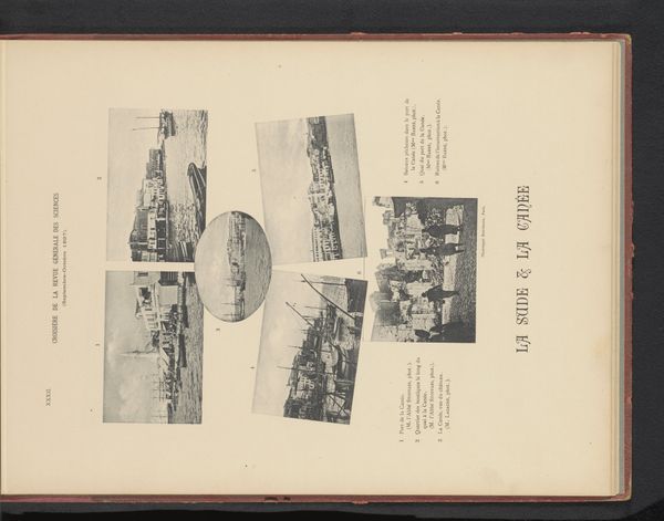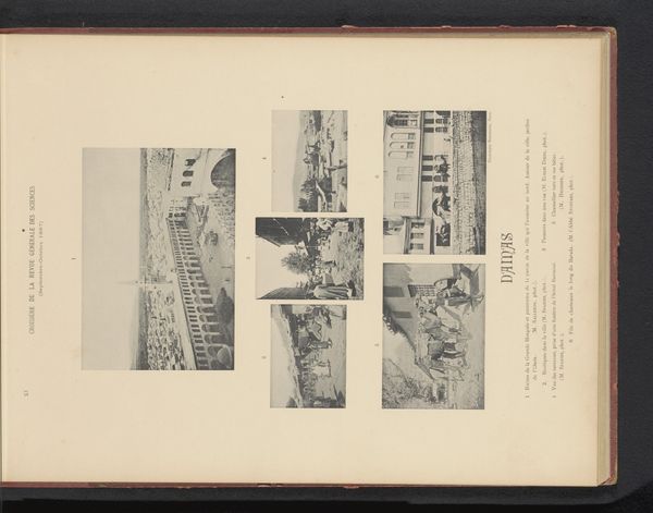 Curator: Let's turn our attention to this compelling printed work titled, “Vijf gezichten op Baalbek, Libanon,” which translates to “Five Views of Baalbek, Lebanon." The print is composed of photographs of the historic site and likely dates from before 1898. Editor: It gives me such a feeling of faded grandeur. The crumbling stone and the stark black-and-white photography amplify the sense of the passage of time, of civilizations rising and falling. There is also a very academic, detached, almost archaeological, feel about it. Curator: That's precisely what strikes me too. These aren't romantic paintings but photographic documentations presented within a larger historical context. You know, the late 19th century saw a surge of Western interest in the "Orient," a concept constructed as much by Western imagination as by reality. Baalbek, with its Roman ruins, held a particular allure. It presented concrete visual evidence to support Western narratives of their own civilization being rooted in classical antiquity. Editor: And by photographing it, these places could be ‘claimed’, documented, and possessed. Were these ruins already being presented as a backdrop for colonial fantasies and imperial agendas? Curator: Undoubtedly. These kinds of visual documents reinforced colonial narratives, where the "West" went in search of what they saw as a romanticised image of the ancient classical period to then return ‘home’ with an objective vision. It subtly affirms a perceived superiority and historical entitlement. Notice the print medium here. A photograph might imply objectivity, but by embedding it within a printed format like this suggests a claim of knowledge or an effort to package the image, give it structure. Editor: You're right. I am curious about that objective gaze too, almost like a scientific dissection through image, presenting details devoid of warmth or immediate emotion, very controlled in what's chosen to be presented. What purpose would something like this serve back then? Curator: Publications featuring images like these would appeal to a learned, probably affluent, Western audience with an interest in history, architecture, and the "exotic." These are likely travelers' guides, geographical studies, or maybe part of efforts to survey the regions being colonised at this time, solidifying this era and its cultural values as part of our visual language. Editor: Seeing it through that lens adds layers of complexity to what initially struck me as just melancholic imagery. Curator: It becomes a reminder that images are rarely neutral, that cultural assumptions shape not just artistic expression but how entire societies interpret the world around them. Editor: A sobering but necessary reminder. Thank you.