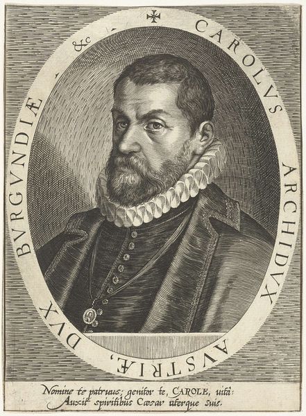 Curator: Looking at this piece, I immediately think: intense scrutiny. The density of line work is almost overwhelming. It’s as though the artist aimed to capture not just the man, but his very essence… his molecular makeup! Editor: Indeed! This engraving, titled "Portret van David Harsdörffer," created in 1669, is attributed to Johann Friedrich Leonard. It's a baroque portrait, brimming with the aesthetic sensibilities of its time, but the sitter’s station and the era are equally present. Harsdörffer was an important figure—a member of the city council. Curator: You know, the precision of the lines… It makes you wonder about the personality of Leonard, the artist. What level of meticulousness are we talking? Did he eat, sleep, and breathe details? It's amazing to see such detail rendered solely through these very fine lines. Editor: Right, the technique reflects a commitment to detail but also tells us something about power dynamics. Consider how such portraits were used – as tools for constructing and conveying authority and legacy. A face etched in lines meant to endure and impress. Curator: It’s kind of like a visual fortress. The ruff around his neck... It feels almost defensive, like a sculptural barricade. You just can't touch that man unless invited. Editor: Absolutely. That ruff, so starched and structured, becomes a potent symbol of status. The composition reminds me of contemporary notions of performativity. He's playing the role of an important and immovable civic figure for posterity. And it also emphasizes his status through exclusion--ostentatious consumption during eras of austerity comes to mind. Curator: I agree entirely. And thinking about what it would mean to sit for something like this... There's something rather charming and alienating about it simultaneously. It reminds me that time is relentlessly flowing onward while we are stuck viewing only but a moment of it! Editor: It invites a deep reflection on power, representation, and the enduring nature of art as a tool of communication, as a lens of status--a fascinating blend, I must say. Curator: Fascinating indeed! It brings me to understand, in ways that touch all senses and intellect, why these portrait are worth preserving in art galleries. Editor: Right—these historical dialogues that echo into our own world, urging us to confront, question, and challenge the stories we tell and those left untold.