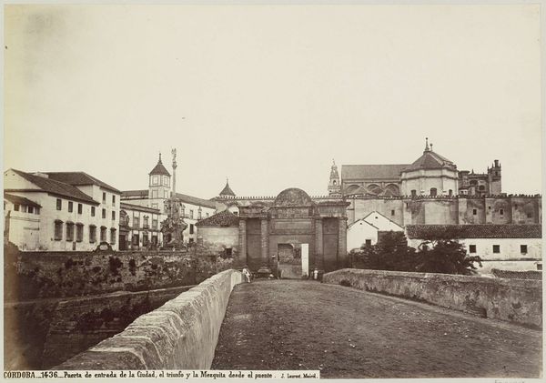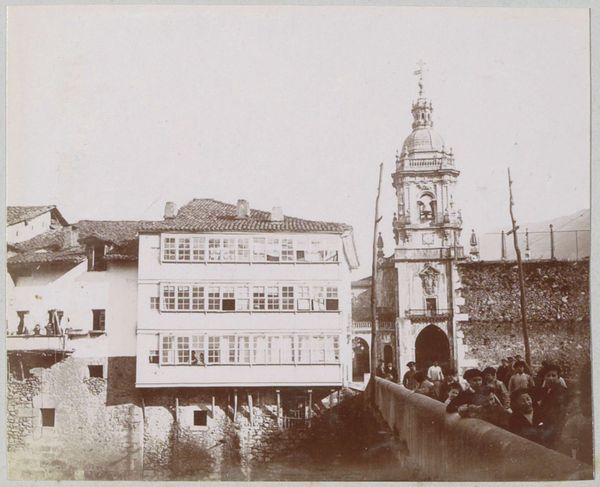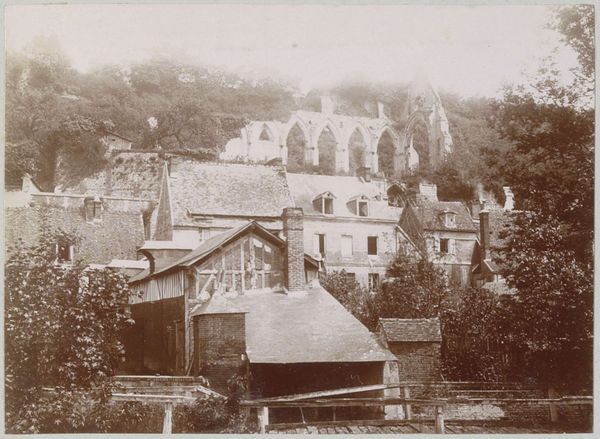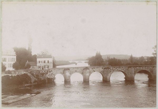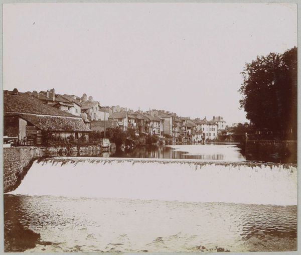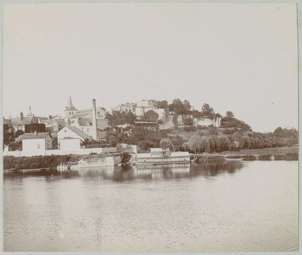 Curator: Here we have "Gezicht op Chanteuges en een rivier," or "View of Chanteuges and a River," taken in 1902. Editor: There's such a quiet melancholy to it. The light feels veiled, almost obscuring the town perched above the river. Curator: This piece demonstrates pictorialism, an approach wherein photographers use various techniques to create images with artistic merit and aesthetic beauty over documentary value. It feels closer to painting, doesn't it? Editor: Absolutely. It makes me consider the romanticized view of rural life so often portrayed at the time, a selective focus on an imagined harmony, deliberately ignoring social inequalities within those idyllic villages. Who does this vision of peace serve, and whose stories are being silenced? Curator: It reminds us of how symbols can become powerful, especially through the romantic lens of nostalgia. Think about that town itself. Villages like Chanteuges, with the river flowing through them and a church rising above, become shorthand for timeless, almost mythical rural places. Editor: And how does the image make use of gendered symbolism? Consider the gentle curve of the river versus the architectural assertiveness of the church. How does the gaze invite the viewer to navigate ideas about nature, spirituality, and power? The muted palette only intensifies these subtle suggestions. Curator: Consider also that this photo was captured around the turn of the century, at a time when traditional social hierarchies were facing great upheaval. Photography like this maybe provided an imagined solace. The architecture looms with great importance and represents tradition. Editor: Right. By visually anchoring the image in that towering building, it asserts a conservative power, framing the community in a particular way and overlooking any tensions or challenges within it. We see the potential for imagery to manipulate, to direct our thinking toward idealized versions of history and experience. Curator: Well, looking at it today certainly opens dialogue on art history and contemporary theory. It speaks volumes about both the creator and the historical period in which they worked. Editor: I appreciate the chance to reflect on what that period represents now and to encourage that kind of vital and sustained questioning through an artwork like this.