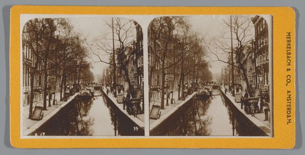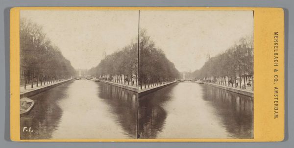 Curator: Here we have a fascinating print titled "Groenburgwal en de Zuiderkerk, Amsterdam," created between 1870 and 1890 by an anonymous photographer. It presents a cityscape bathed in a hazy, almost dreamlike light. Editor: Immediately, I am struck by its serene quality. The stillness of the water and the soft focus give it an ethereal feel. It's as if time has slowed down. Curator: The photograph is clearly aligned with Pictorialism, aiming to achieve painterly effects. The softness is likely the result of careful manipulation of photographic materials and processes available at that time. It’s not merely a snapshot; it’s a crafted image. We must also consider its role in the growing market for mass-produced imagery; the late 19th century was seeing an explosion in print culture and photographic images were highly coveted commodities. Editor: And the Zuiderkerk steeple becomes a powerful symbol here, a subtle monument amidst the ordinary daily life reflected in the canal. Churches often represent spiritual stability but, in this image, the light makes it almost ephemeral. It speaks to the delicate balance between the mundane and the monumental within a city. Also, note how the water mirrors the steeple, doubling its presence. This resonates with historical emphasis on water as a site of reflections, both literal and spiritual. Curator: The reflections are particularly fascinating. Look closely at how the textures are rendered, and consider the labor invested in this piece; it gives us insight into both the anonymous photographer’s method and the contemporary market which provided this piece for consumption. The piece almost blends high art and popular culture! Editor: It really invites you to consider the cultural memory embedded in these urban spaces. The canal and church aren’t just physical structures, they’re vessels of collective experience, layered with historical meanings and emotional associations. The muted tones remind us that memories often fade, transformed by time, and only hint at their past importance. Curator: Absolutely, it bridges social documentation and artistic expression using a developing commercial technology! It prompts us to think about the cultural implications of photographic technology during this time. Editor: I agree completely. This image really underscores how potent the intersection of place and symbolism is. Curator: Yes, it also invites exploration into the making of urban identities. Editor: Exactly!
