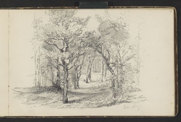 This is a drawing in graphite on paper, by Maria Vos. It’s a seemingly simple sketch of a forest path, but the way it's made tells us a lot. Graphite, essentially a purified form of carbon, has been mined and processed for centuries, eventually becoming the 'lead' in pencils, allowing for a readily portable means of artistic production. Vos uses the pencil to create depth through varying pressure, and by layering lines, she coaxes out the textures of bark, leaves, and shadows. There’s a remarkable sensitivity to the effects of light, capturing the stillness and the beauty of the forest interior. We might think of drawing as a preliminary activity, a sketch that’s secondary to finished painting, but it also stands alone as an intimate engagement with the world, one that allows for sensitivity to the natural world. In its own way, this direct, hands-on process is just as valuable as any grander statement, reminding us of the value of quiet observation.