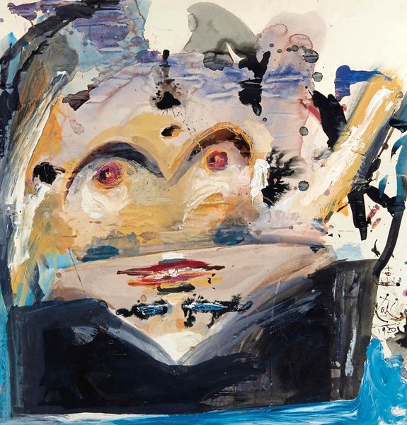 Editor: So, this is *Untitled*, a 1948 watercolour and ink work by Joy Hester, currently at the National Gallery of Victoria. There's something quite unsettling about the gaze, and the simplification of the features. What do you make of it? Curator: Unsettling is a good word. Notice how the eyes are emphasized – disproportionately large and intensely blue against a muted palette. Eyes, throughout art history, often serve as windows to the soul, reflecting inner turmoil or enlightenment. What do these eyes communicate to you? Editor: I feel a sense of unease, perhaps vulnerability, definitely heightened emotion. They’re quite captivating, but almost too intense. Curator: Precisely. Hester was deeply interested in psychoanalysis and the human condition. This piece, while abstract, speaks to universal themes of identity and emotion. Consider the cultural memory attached to the gaze – its power to judge, to empathize, to control. The stark lines almost evoke a mask. Do you see the historical symbolism in masking? Editor: Like hiding or presenting a certain version of self? In the ‘40s, was Hester perhaps addressing the anxieties of a postwar world and hidden trauma? Curator: Absolutely. Expressionist art frequently uses distortions like this to communicate unspoken truths. Look at how the blue outlines almost attempt to contain the grey washes but cannot quite manage it. What feeling do you interpret from this compositional structure? Editor: Restrained? There’s tension between the attempt to confine the emotions and their fluid, almost uncontrollable nature. Curator: That’s it exactly. Hester offers an interesting image here, as the viewer becomes both the observed and the observer. It's not just a portrait but a psychological exploration. Editor: That tension really highlights the power of even limited colour choices. I initially missed so many symbolic readings here. Thank you for offering these new interpretations.