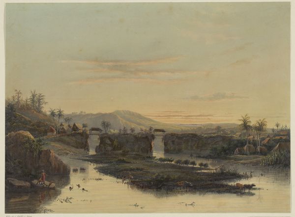 This watercolor of the Wenditt Bathing Resort in Java was created by Johan Conrad Greive, sometime in the mid-19th century. The work is made using watercolor paints on paper. Consider how the artist is using traditional techniques of watercolor painting to represent this place, which at the time was part of the Dutch East Indies. Look at the details – the way the figures are arranged, the architecture, and how it contrasts with the natural environment. It is clearly intended as a picturesque scene. Yet, the very act of portraying this landscape is closely tied to the labor and exploitation inherent in colonialism. This seemingly innocuous bathing resort cannot be separated from the context of Dutch occupation and resource extraction in Java. The painting thus serves as a potent reminder that even the most conventional artistic materials and methods are deeply embedded in wider social and political issues.
