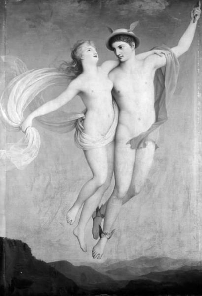 Maurice Denis made this panel, number seven in ‘The Story of Psyche’, with oil on canvas. He wasn’t trying to trick us with realism; instead, he’s laying down these simplified shapes and colours with a sense of pure joy. Look at the way he's built this world of sky and cloud with these loose brushstrokes. There's something so dreamlike in the way he handles the paint, almost like he's sketching with colour, isn't it? The pale blues and creams feel light as air, while the pinks of Cupid and Psyche give everything a soft, ethereal glow. Those little white birds dotting the sky add another layer of delicate movement. Denis doesn't hide his process; you can almost feel him making decisions as you look. Denis was part of a group called the Nabis, who were all about expressing emotions and spiritual ideas through simplified forms. You can definitely see that in the way he reduces the figures to their simplest, most graceful shapes. This reminds me a bit of Puvis de Chavannes, but with a more intimate, personal touch. It's like he's inviting us into his own private dream.