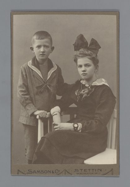 This is a portrait of a boy and girl with toys, made by Adolf Neumann using photographic processes. Photography emerged in the nineteenth century and changed the way we make and see art, influencing painting, sculpture and design. This photograph is a reminder of the medium’s ability to freeze a moment in time, capturing not just the children's likenesses, but also their social context and the rituals of childhood at the turn of the century. The materials used—glass plates, light-sensitive chemicals, and paper—required a carefully calibrated industrial system. The photographer relies on both technical skill and artistic vision to harness the power of photography. By focusing on materials, processes, and social context, we gain a richer understanding of the role of photography in shaping modern visual culture and class. It challenges traditional distinctions between fine art and craft, raising important questions about value, labor, and representation in the industrial age.