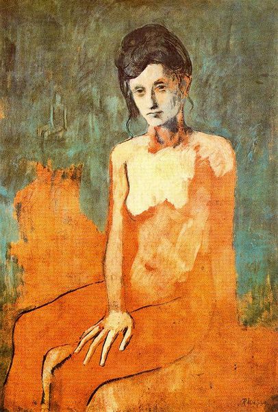 Curator: This is Amedeo Modigliani's "Seated Nude," painted in 1909. It's currently held in a private collection. What strikes you about this piece? Editor: There's an immediacy to it, almost unfinished. It feels like a fleeting glimpse, a sketch capturing a mood more than a likeness. There is also a distinct asymmetry in the posture. It evokes thoughts of Egon Schiele's portraits but softer, less… tortured. Curator: That rawness is key, I think. Modigliani’s nudes, especially those from this period, exist at the intersection of vulnerability and defiance. Considering the art world's dominant male gaze then and now, what dialogues around feminism might the paintings invoke for viewers today? Editor: Exactly. The "Seated Nude," like many nudes throughout history, must be contextualized in histories of power and objectification, a representation of the body and the construction of identity that touches upon critical theory. There is always going to be some tension and potential complicity in presenting a nude—questioning representation is critical, from Laura Mulvey onwards. It forces us to ask: Who is the subject, and who is doing the seeing? But perhaps the tilted head implies some degree of agency, however muted. Curator: The color palette itself is very somber. Blues and muted peach tones that speak to me on an emotional level. Did Modigliani feel some melancholic kinship with his subject? There is such mystery within the paint texture itself—like she almost disappears into the canvas, the boundary blurs. Editor: Melancholia is always gendered too—cultural constructions of feminine sadness and introspection versus male angst! Thinking about Modigliani through a social justice lens makes you question both the context in which these works were created and continue to be presented. Curator: Absolutely, which makes encountering this painting all the more compelling—we wrestle with so much at once. Editor: Precisely! We bring our entire socio-historical knowledge into this intimate encounter across time. Curator: I leave with the distinct impression of seeing the artist more than the sitter! Editor: I am more convinced by how crucial it is to understand the structures through which art speaks to—and often past—us.