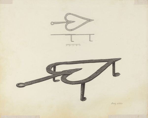 Here we see a trivet, drawn by Holger Hansen, an object designed for the hearth, yet it carries echoes far beyond its utilitarian purpose. Observe its heart-shaped form, a symbol laden with love, vitality, and courage, yet forged in rigid iron, a material of strength, protection, and sometimes, oppression. This duality is not new. We see the heart motif in ancient votive offerings, expressions of devotion, but also in heraldry, emblems of power, and the courage needed in battle. Consider also the handle, a singular extension ending in a circle, suggestive of continuity and completion, like the Ouroboros, the snake eating its own tail. This symbol transcends cultures, from ancient Egypt to Norse mythology, representing the eternal cycle of life, death, and rebirth. The hearth is the heart of the home. The artist imbues this simple object with layers of meaning, inviting us to consider how symbols both anchor us to our past and evolve through our collective consciousness.