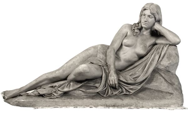 Curator: Looking at this piece, the first thing that strikes me is this profound sense of tranquility, a quiet stillness that just washes over you. What’s your impression? Editor: It’s certainly lovely, although perhaps a touch sentimental for our modern tastes. It’s actually a marble sculpture, completed in 1852 by J.A. Jerichau. The museum titles it “A Sleeping Autumn Girl”. Curator: Sentimental, yes, but also really telling. The sculpture idealizes rural labor, doesn't it? There she is, half-nude, but somehow still pure, dreaming amidst the bounty she helped create. Editor: Absolutely, it speaks volumes about the artistic climate of mid-19th century. The Classical Realism movement was really fixated on presenting idealized versions of life, almost like moral lessons cast in stone, right? Curator: Indeed. There’s a deliberate attempt here to sanitize reality, focusing on aesthetic beauty over the hardships of agricultural life. And it aligns with the art world being so institutionalized. Art academies of the time are shaping tastes. What kind of patron wanted to project this image? Editor: Right! Like, the art world—the market—becomes the great stage on which these cultural ideals play out, very often reaffirming established values rather than challenging them. Do you find that’s always the case? Curator: Not always, thankfully! But pieces like this certainly provide a valuable window into the power structures influencing artistic production back then, wouldn’t you say? Editor: Totally. Now, I find myself wanting to dive deeper into who Jerichau was and the kind of statement he was trying to make with his art, so that alone feels like a little victory for today. Curator: Indeed. The role of the artwork remains central. We look at it to understand our human story, to understand ourselves.