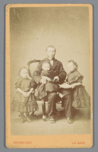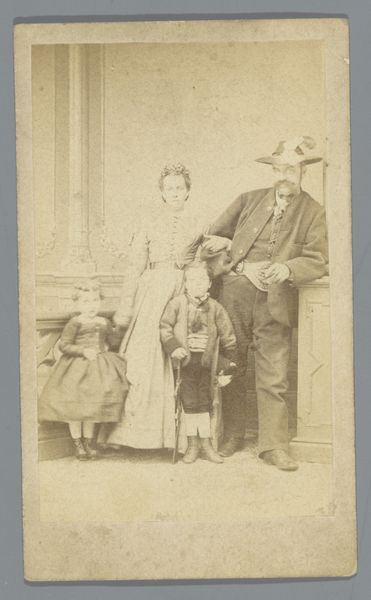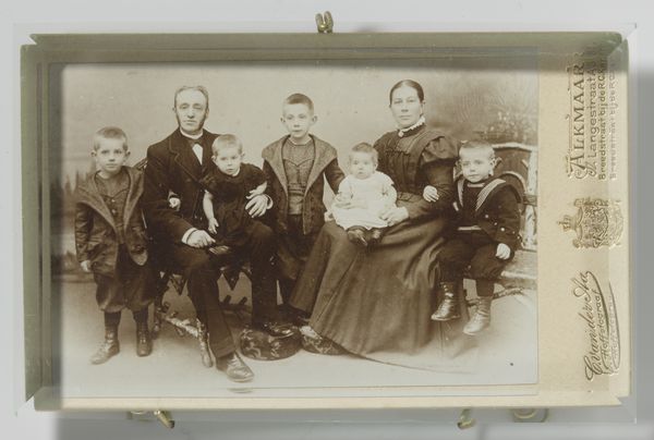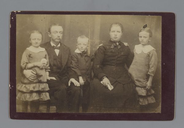 This is a photograph of the Nopper family by G. Feldmeyer, its date unknown. The family members are formally arranged: mother and father at the sides, children in front, all gazing directly at the viewer. This structured pose speaks volumes about the era's values—family, order, and the presentation of a composed facade. Consider the clothing—dark, heavy fabrics and the father’s formal suit. This recalls similar attire in countless family portraits across Europe, echoing the bourgeois desire for respectability. The dark clothing, while practical, also carries a somber tone, which, in different times and contexts, might evoke feelings of solemnity, even mourning, a common thread in photographic portraiture due to its capturing of a moment that is already passing. The family's serious expressions reveal an emotional and psychological tension, as the act of posing itself becomes a performance, laden with the weight of societal expectations. Such images resurface time and again, each instance reflecting a cyclical return to themes of identity, lineage, and the desire to leave a lasting mark.