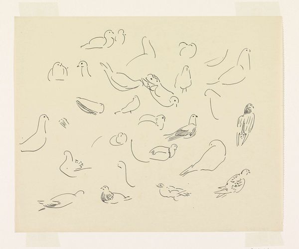 Leo Gestel made this drawing, Drie naakte vrouwen, zwemmend, with a pencil on paper. Look how the pencil lines give the bodies a sense of weightlessness, almost floating. It's like he's capturing a fleeting moment, a casual gesture, like a snapshot. I love the way Gestel uses simple lines to suggest volume and movement. See how the lines around the arms and legs are so fluid, so light. It’s almost as if they could disappear at any moment! The texture of the paper, peeking through the graphite, adds a layer of depth, too. It reminds me of those quick sketches artists make in their notebooks, capturing an idea before it vanishes. Gestel’s work makes me think of other artists who played with line and form, like Matisse. Art’s like a big conversation, isn't it? Always borrowing, always responding. What do you think, can the conversation continue?