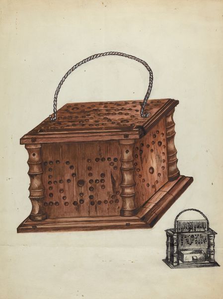 Raymond Manupelli rendered "Coffee Grinder" at an unknown date using pencil, watercolor, and graphite on paper. Manupelli, born in 1855, lived through a period marked by significant industrial and social change. Looking at this object, we see a detailed rendering of a common household item elevated through meticulous artistic representation. The coffee grinder becomes not just a tool, but a symbol of daily life and domestic labor. Consider how the simple act of grinding coffee connects to broader issues of trade, labor, and the global economy. Coffee, often grown in colonized nations, finds its way into our homes, supported by complex networks of power and dependence. The presence of the coffee grinder speaks to shifts in consumption and the increasing availability of goods during Manupelli's time. As you reflect on this image, think about how everyday objects can tell us a lot about societal structures and our personal connection to global events.