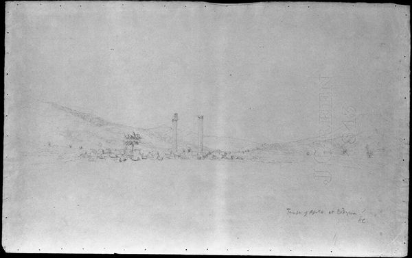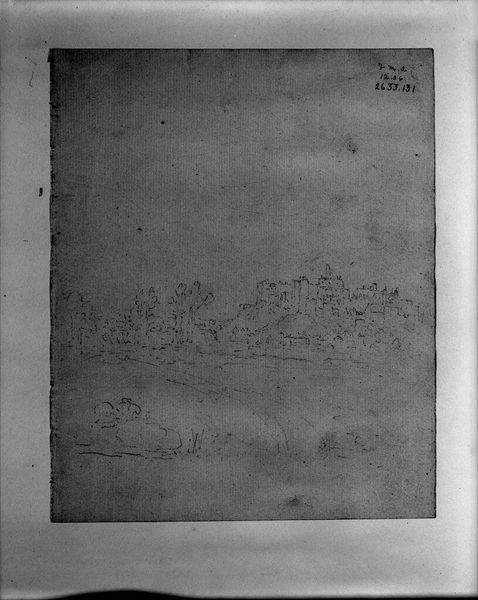 Curator: This lovely sketch captures a "View of the Elbe with the Town of Aussig," the work of Adrian Ludwig Richter. I find it especially captivating. Editor: It feels like a half-remembered dream, all soft lines and muted tones. The whole composition seems to be breathing. Curator: Richter was a master of romantic landscapes. Remember that in his time, views like this were often commissioned by burgeoning industrial towns seeking to promote themselves. Editor: So, a kind of PR campaign, only rendered in pencil? But there’s something so vulnerable about the piece; it whispers rather than shouts. Curator: Exactly. It acknowledges the picturesque beauty of a place on the cusp of change. Richter often infused his works with a deep understanding of social and environmental dynamics. Editor: I can’t help but sense a tinge of melancholy. The sketchiness almost makes the scene feel transient, as if it could disappear at any moment. Curator: A fleeting glimpse, perhaps, into a world both beautiful and impermanent. Thanks for that perspective. Editor: And thank you for bringing Richter's subtle beauty to light. I’m left with a quiet sense of wonder.