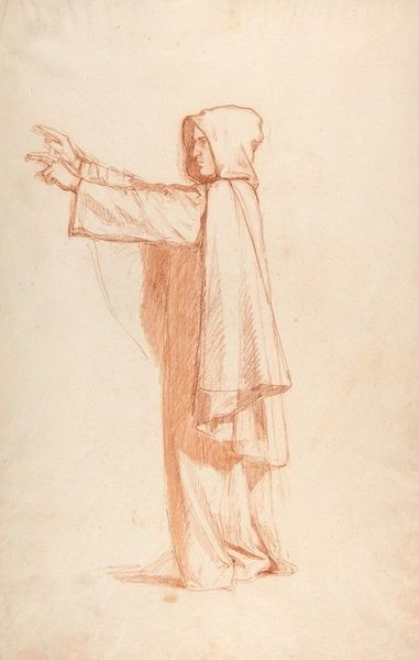 Editor: Here we have what appears to be a preliminary drawing entitled "A Sportsman Loading His Gun" by George Morland. It's rendered in pencil, and the sketch-like quality gives it an immediacy, a feeling like we're observing a private moment. What are your thoughts, especially considering the period it might be from? Curator: It's fascinating how a seemingly simple genre scene like this can be a window into understanding broader social attitudes towards leisure and class in its time. Morland was particularly adept at portraying everyday life, often idealizing rural existence for an urban audience. Consider the figure’s clothing; does it strike you as purely functional hunting garb? Editor: Not particularly, it seems a bit stylized, perhaps more aspirational than practical? Curator: Exactly! And that's key. Works like this helped construct and disseminate certain idealized notions of country life, often glossing over the realities of rural labor and economic disparity. The consumption of such images by the burgeoning middle class fueled a romantic vision of a lifestyle to which they may have aspired but likely never fully experienced. What effect do you think that idealization had on the public's perception of both urban and rural life? Editor: It almost created a type of fantasy, a romanticized escape that obscured a lot of the hardships that really existed. Seeing the image like this makes me rethink its intention. It's not simply a portrayal; it’s shaping perceptions. Curator: Precisely. By focusing on a figure engaged in a sporting activity, Morland’s drawing subtly reinforces certain class distinctions while simultaneously presenting a palatable and picturesque image of English identity. Editor: I see. So this seemingly straightforward drawing is much more layered, hinting at complex social and political undercurrents through its very simplicity. I'll never look at a drawing of a 'sportsman' the same way again!