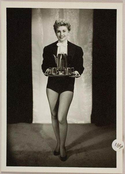 Robert Burian made this photograph, titled *Untitled (woman holding coffee pot)*, on unspecified materials and most likely in the mid twentieth century. The inverted tones create a feeling of otherworldliness, as if we are seeing a ghostly apparition. The material aspects of the work – its grayscale palette, the subtle gradations of light and shadow, and the slightly grainy texture – contribute to its emotional and conceptual resonance. The woman’s presence is both assertive and ambiguous. Consider the detail of the coffee pot on the tray. It’s sharply defined in contrast to the surrounding elements, almost as if it’s the key to a secret narrative. This work makes me think of Diane Arbus, whose photographs explore the human condition with a similar blend of empathy and detachment. It’s a reminder that art, like life, is often more about questions than answers.