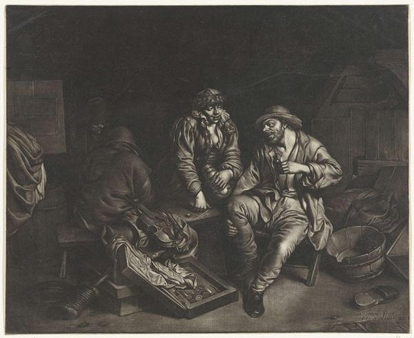Leendert Brasser created this print called, "Three Farmers at a Table Smoking and Drinking," sometime in the 18th century. Brasser, who worked during the Enlightenment, offers us a glimpse into the lives of the working class, a subject gaining traction in artistic circles, as the old hierarchies began to be challenged. Here, three men sit together, their faces etched with the signs of hard labor and simple pleasures: tobacco and drink. The setting is humble, the attire unpretentious, yet there’s an undeniable dignity in their camaraderie. Brasser, rather than idealizing his subjects, presents them with an honesty that is both refreshing and revealing. The image gives us a scene of men relaxing in each other's company, at a time when class distinctions dictated nearly every aspect of life. What does it mean to see these men, rendered with such care, at a moment of respite? It encourages us to consider the narratives of those often overlooked in the grand narratives of history, allowing their stories to emerge from the shadows.