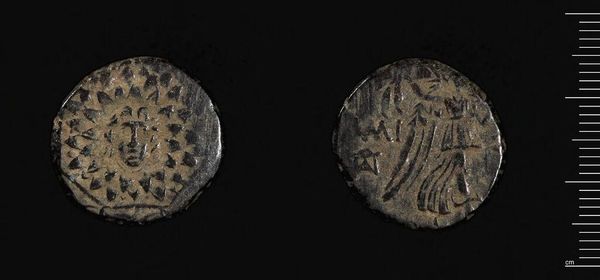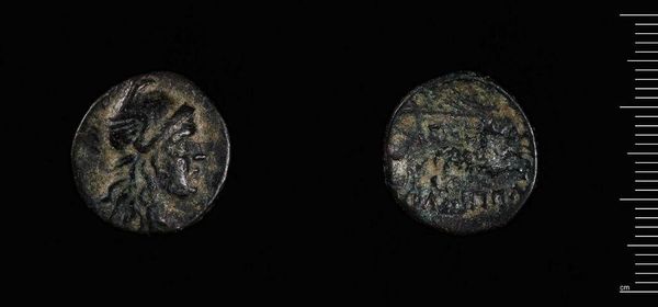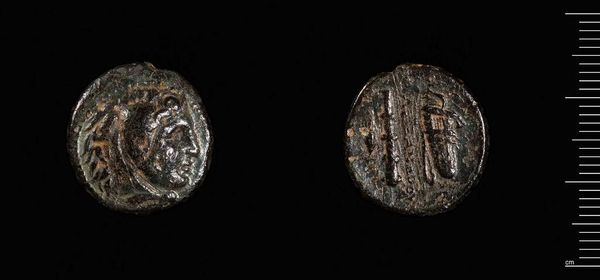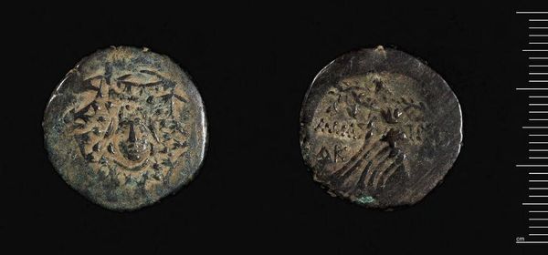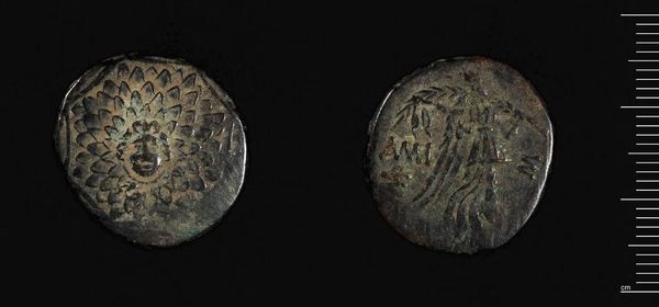 Curator: The Harvard Art Museums hold this fascinating artifact: a coin of Mithradates VI of Pontos, from Amisos. It strikes me as surprisingly elegant, even in its worn condition. Editor: Indeed. One sees, in the figure of Nike, the embodiment of victory, rendered with such exquisite detail, defying the limitations of the coin's modest scale. But what of Mithradates himself? Curator: This coin, beyond its intrinsic aesthetic, presents Mithradates's complex self-fashioning. He strategically aligns himself with Greek deities, thus legitimizing his rule and projecting an image of power. Editor: So, a calculated move. I note the deliberate use of imagery, the eagle, the star, the crescent. All serve a propagandistic purpose, aiming to convey divine favor, reinforcing Mithradates’s authority. Curator: Precisely, yet the formalism is undeniable. The balance, the symmetry, all contribute to a powerful visual statement, irrespective of the political motivations. Editor: Perhaps a reminder that even in art with overt political aims, aesthetic choices are never neutral. Curator: An intersection of power and artistry, then. A compelling synthesis. Editor: I concur. It makes you consider all the possible nuances embedded in something as simple as currency.