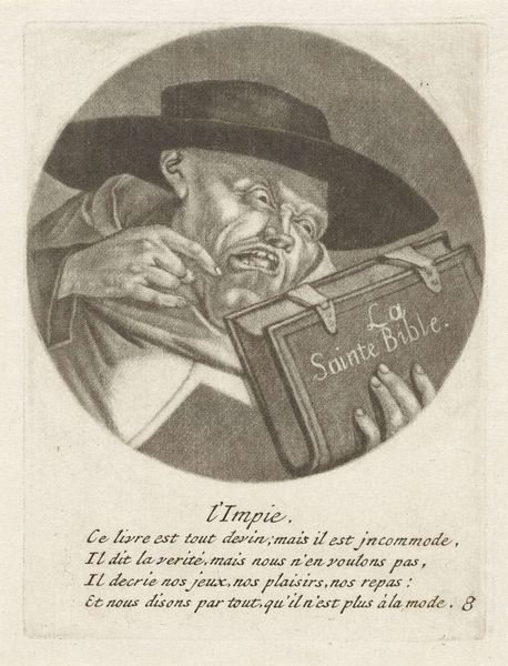 This print, "Geestelijke met een roofdier," or "Cleric with a Predator," was made by Jacob Gole, likely in the late 17th or early 18th century. It depicts a clergyman with a wolf lurking behind him. This image reflects the social and political tensions prevalent in the Dutch Republic during that time. The Dutch Golden Age saw the rise of a wealthy merchant class and increasing critiques of the established church. Here, the clergyman's association with the wolf—a symbol of greed and rapacity—suggests a commentary on the perceived corruption within religious institutions. The text "L'Insatiable" reinforces this critique, accusing the cleric of being incapable of satisfaction. Such prints played a crucial role in shaping public opinion. Art historians consult period pamphlets, sermons, and other visual media to understand the social context in which these images were produced and consumed. By examining these sources, we gain a deeper understanding of the complex relationship between art, religion, and social critique in the Dutch Republic.