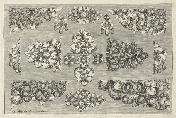 This engraving of jewelry designs, insects, and foliage was crafted by Joseph Friedrich Leopold sometime before 1726. It's remarkable how Leopold intertwines symbols of nature with luxury. Observe the motifs of insects and foliage, recurring symbols in jewelry design across cultures. Insects, often seen as symbols of transformation and renewal, evoke a sense of vitality and change. Foliage is a timeless motif, representing growth, fertility, and the cyclical nature of life. These natural symbols echo in ancient Egyptian scarab beetles and the laurel wreaths of classical antiquity. The juxtaposition of transient insects with enduring jewels touches upon the psychoanalytic idea of the 'memento mori'. Think of a skull, a common symbol to remind us of our mortality. The insects serve as a potent reminder of the fleeting nature of life, a theme deeply embedded in our collective consciousness. These symbols take on new meanings with each era, illustrating art history’s non-linear progression, as the past resurfaces in the present, transformed by cultural memory.