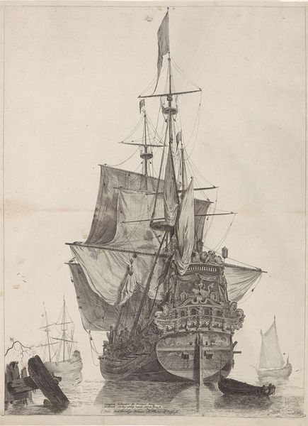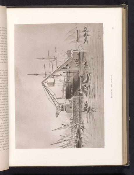 Editor: Here we have William J. Mullins's "Untitled [ship at wharf]," a gelatin silver print from 1900. It’s a rather muted, grey image. I’m immediately drawn to the contrast between the intricate rigging of the ship and the solid, boxy shapes of the wharf buildings. What stands out to you, looking at this piece? Curator: The tonal range here is exquisitely controlled, isn't it? Note how Mullins utilizes the varying densities of the gelatin silver to establish a sense of depth, despite the shallow focal plane. The near-monochromatic palette underscores the geometric relationships between the ship's masts and the angular architecture. Consider how the artist deliberately blurs the line between representation and abstraction, prompting a contemplation on form itself. Editor: So you’re saying the details are less important than the shapes and the way they relate to each other? Curator: Precisely. Disregard for a moment the depicted objects. What remains? An interplay of vertical and horizontal lines, softened by the atmospheric haze. The artist seems interested in exploring the fundamental elements of visual structure—line, tone, texture—almost independently of their representational function. Do you see how the eye is guided through the composition, tracing those structural lines? Editor: I do, especially the way the masts pull your eye upwards, but then the horizontal lines of the wharf bring it back down. So the mood almost becomes secondary to the form itself? Curator: Exactly! The emotional tone emerges *from* this arrangement of forms. One might even argue that Mullins invites us to perceive the aesthetic value of industrial landscapes. By distilling his subject to its bare structural components, he compels us to reconsider what constitutes beauty and meaning in art. What has this approach revealed for you? Editor: It’s given me a completely new appreciation for black and white photography as a structured composition. Curator: And for me, it reaffirms the timeless power of formal analysis to unlock hidden depths in even seemingly simple works.