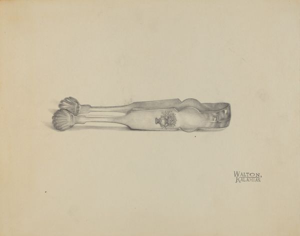 This is Kalamian Walton’s drawing of silver sugar tongs. These tongs, utilitarian yet ornate, bring to mind a hidden language. The floral motifs at the tips echo ancient symbols of growth and prosperity, found in countless cultures from Minoan frescoes to Renaissance tapestries. These stylized flower or leaf shapes, seemingly benign, can trigger deep-seated associations with nature's bounty and the sweetness of life, reminding us of our connection to ancestral lands and traditions. Consider how similar botanical elements appear in the decorative arts of the Islamic world, or even in Art Nouveau designs. These recurring forms, passed down through generations, subtly influence our emotional response. Is it merely a decorative flourish, or a carefully coded message meant to evoke a sense of comfort and familiarity? Such is the enduring power of symbols.