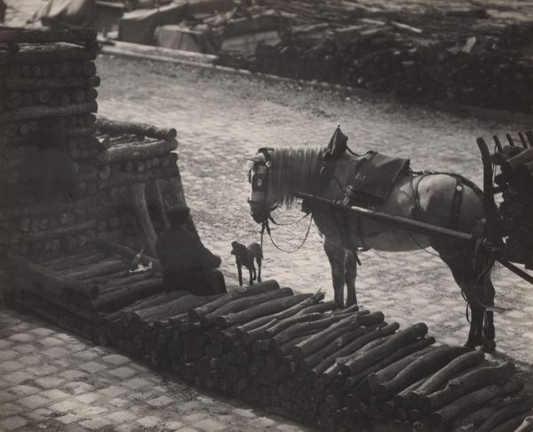 This photograph of a horse and cart laden with milk canisters was taken by George Hendrik Breitner. Breitner was a Dutch painter and photographer known for his images of urban life in Amsterdam during the late 19th and early 20th centuries. The photograph encapsulates the harsh realities of working-class life during this period. The horse, collapsed on the cobblestones, becomes a stark symbol of the physical toll exacted by labor. We see a city dependent on animal labor for its sustenance, yet seemingly indifferent to the well-being of these animals. Breitner's approach to realism, sometimes verging on social commentary, is evident here. This is not a romanticized vision of rural life, but a gritty portrayal of the working conditions that fueled the city's growth. The photograph invites us to reflect on the relationship between labor, class, and the often-unseen costs of urban development. It’s a poignant reminder of the lives, both human and animal, that were shaped by the demands of a rapidly changing world.