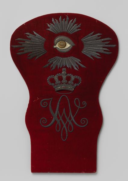 This is an embroidered textile, known as "Uuk kap Ilgich," made by Lakai people. Notice the striking contrast of the red background against the ornate embroidered patterns. The composition is divided into two main registers, each featuring symmetrical, stylized motifs. These forms, rendered in gold and ivory threads, are juxtaposed with darker accents in black and bursts of color in purple, blue, and red. Each motif presents a mirror image across a central axis. This symmetry not only creates visual harmony, but also directs the eye upward. The texture of the embroidery adds another layer of complexity, inviting a tactile experience. The textile's visual structure and materiality suggest an underlying order, perhaps reflecting social structures or belief systems. By decoding its visual components, we begin to appreciate how the textile challenges fixed meanings and engages with new ways of thinking about space, perception, and cultural representation. Consider how these forms contribute to the visual discourse of the textile, inviting ongoing interpretation and re-interpretation.