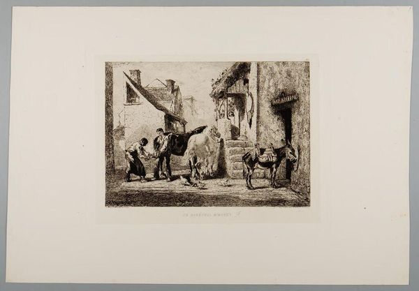 Curator: Jan Pieter de Frey's print, "The Good Samaritan," presents a scene rich with detail. The dramatic lighting and careful composition immediately strike me. Editor: It feels theatrical. The characters arranged almost like figures on a stage, caught in the act of caring. What can you tell me about the socio-political influences here? Curator: Prints like these were often vehicles for disseminating moral lessons, particularly within religious communities. The story itself, of course, highlights compassion, relevant in any era. Editor: The etching technique allows for such incredible intricacy, though! Look at the textures of the fabrics and the nuanced rendering of light and shadow. It really amplifies the dramatic tension of the scene. Curator: Indeed, the linear quality adds to the overall sense of clarity. A clarity reflecting the virtues being promoted, perhaps? Editor: Perhaps. Regardless, thinking about the print's audience then and now, it raises interesting questions about who is considered "neighbor" and who is excluded. Curator: A timeless question, skillfully visualized through form and light. Editor: A powerful and enduring message about the human condition.