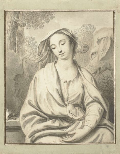 Louis Fabritius Dubourg created this drawing, named "De Eendracht", meaning "The Unity", using pen in gray ink and brush in gray wash. Here, we see a maiden, the embodiment of unity, clutching a bundle of arrows. Individually, a single arrow snaps easily, but bound together, their strength is formidable. This visual metaphor, originating in Aesop's fables, has been a symbol of concord and collective strength since antiquity. Now, consider the image's emotional resonance. Her hand pressed to her chest, she evokes feelings of solemn resolve. This motif echoes through time, much like the "concordia" seen in Roman coins showing clasped hands, or the Renaissance allegories of peace with their unifying gestures. The arrows of unity and concord are never fully stilled, recurring through the ages. The image reminds us that in the theater of human history, certain symbols and emotions endlessly reappear, are re-enacted, and are imbued with renewed vitality.
