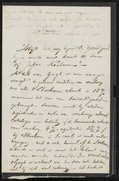Editor: Here we have "Briefkaart aan Philip Zilcken" by Karel Sluijterman, likely from sometime between 1904 and 1925. It's ink on paper, a postcard filled with looping script. There's something immediate and personal about the handwritten note that feels quite different than printed correspondence. What strikes you most about it? Curator: What grabs me is its raw materiality. The ink bleeding into the paper, the distinct impression left by the nib. It’s more than just conveying information; it’s a record of physical labor and interaction. The choice of materials – why ink rather than pencil? Was the paper readily available or carefully selected? It points to a whole social context. Editor: So, you see value in looking beyond just the message and considering the physical components? Curator: Precisely. We can even analyze the standardization, or lack thereof, in postcard production at the time. Was this pre-printed with the 'Bibliotheek' heading, or individually commissioned? Even the script – the hand-lettering itself – can be viewed as a kind of industrial art. It speaks to the writer's education, their access to materials, their participation in a specific network of exchange. Editor: That's a different way of viewing it. I usually think of the aesthetic or emotional intent, but you are focusing on its existence as an object made through particular social conditions. Curator: Exactly. And even that aged quality of the paper… how has time altered its materiality? The yellowing, any foxing… these are all markers of its journey through the world, its exposure to certain environmental factors. It all tells a story of consumption and preservation. Editor: This perspective adds so much richness to my understanding. Thank you. Curator: My pleasure. It shows how even the most seemingly simple objects contain multitudes.