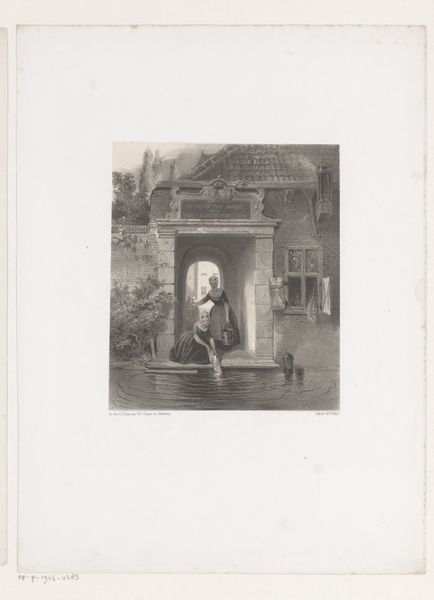 Editor: This etching by Willem Witsen, dating from around 1914, depicts a gondola in the Canal Grande in Venice. There’s a melancholic mood here, almost ghostly, heightened by the reflections in the water. What stands out to you when you look at this print? Curator: It’s fascinating how Witsen captures the Venetian atmosphere. Notice the striped mooring poles? These are loaded with symbolism. The alternating colors – traditionally red and white – indicated the aristocratic lineage of the families whose palazzi lined the canals. They are visual anchors to a rich, complex past, aren’t they? Editor: Absolutely, I hadn’t thought about that level of detail. The figure looking out of the window – is that also significant? Curator: Indeed! It evokes a sense of voyeurism, a hidden life within those aged walls. Consider the window itself – a liminal space between the private and the public. This figure observing from above could be interpreted as the gaze of history itself, looking down upon the fleeting gondola, the transient present. Don’t you think? Editor: That’s a really insightful point about the figure representing history. I was so focused on the gondola that I almost missed the person completely. It really adds another layer to the story. Curator: Visual elements accumulate meanings, sometimes across generations. How do you feel the artist wants us to feel about Venice, witnessing this scene? Editor: Now I’m thinking less romantic and more…contemplative? It’s like a postcard hinting at so much more beneath the surface. Curator: Exactly! And that's the power of iconography, isn’t it? Revealing the depth within the seemingly simple image. Editor: This has totally shifted how I view the print; thanks so much! Curator: My pleasure; art unveils more each time you look.