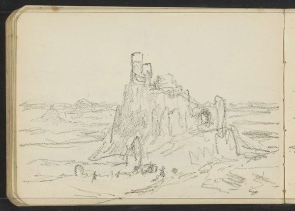 Editor: This is Johann Adolf Lasinsky's "Ruine Drachenfels", currently at the Harvard Art Museums. It's a very detailed drawing, almost architectural in its precision. What's your interpretation of this landscape? Curator: This work evokes ideas of romantic nationalism and the sublime. The ruined castle atop the dramatic cliffs speaks to the decline of feudal power. Consider how it might have functioned as commentary on the political landscape. What stories do you think this ruin tells? Editor: It makes me think about the passage of time and how nature reclaims everything. Curator: Exactly. And whose stories are centered in these romantic portrayals? Exploring the absence of certain narratives is just as important as what’s depicted. Editor: I never thought about it that way, thanks! Curator: It highlights the complexities of history and representation.