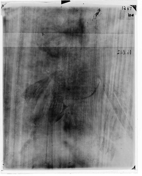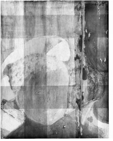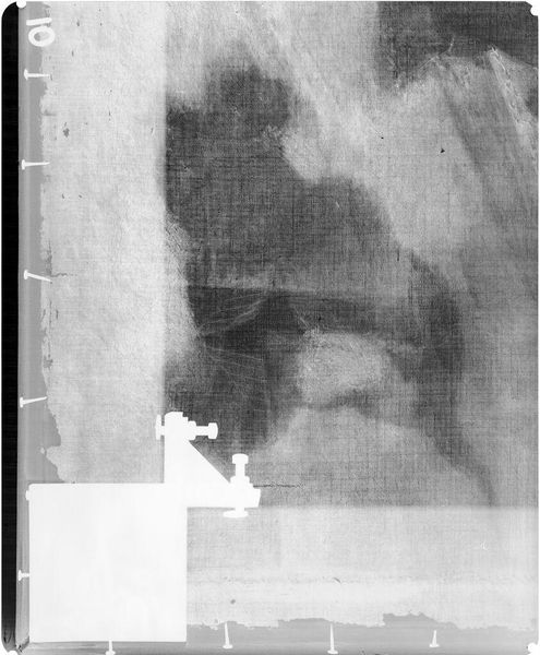 Editor: This is an X-radiograph of "Man with Square Beard," a film of an artwork by Corneille de Lyon held at the Harvard Art Museums. It looks like the painting is behind bars. What do you see in this image? Curator: The gridded effect is fascinating; it reminds me of imprisonment, of hidden truths revealed, echoing in the way portraits often capture power yet also conceal the sitter's true self. Does the grid remind you of anything? Editor: It makes me think about the way digital images are structured. It's interesting to see that even an old painting can be broken down into pixels, in a way. Curator: Exactly! The grid highlights the construction of the image, and how layers of meaning are built upon each other. It's a reminder that what we see is never the whole story, but a constructed interpretation. Editor: That's such a cool perspective. I'll never look at an X-ray the same way. Curator: Nor will I; the digital comparison has given me a new appreciation for symbolism and image.