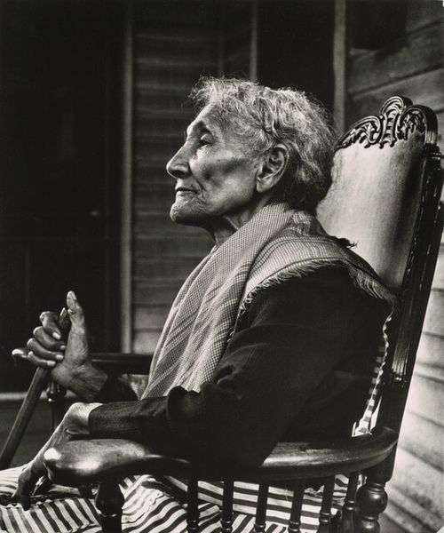Curator: Let’s discuss this striking gelatin silver print, simply titled "Untitled (Storefront Churches series)" by Milton Rogovin, created around 1960. It’s part of a larger body of work. Editor: My first impression is one of raw intimacy. The stark black and white, the angle of the woman's face, bathed in light from above – it’s as if we’re intruding on a deeply personal moment. The contrast emphasizes texture, particularly in the sitter's hair. Curator: Absolutely. The upward tilt invites us into a space of reverence or intense emotion. Note the symbolic power of that single, exposed lightbulb above, the single source of light here: it serves almost as a halo. This piece, from his "Storefront Churches" series, highlights Rogovin's commitment to documenting the spiritual and cultural landscape of marginalized communities. Editor: And let's not forget the socio-economic implications. Storefront churches often arise in communities lacking resources. They’re born out of necessity, and function simultaneously as places of worship and community hubs, far removed from ornate architecture or expensive materials. Rogovin's choice of photography emphasizes its accessibility as a medium; mass production meets an artistic record. Curator: Indeed, this connects back to Rogovin's social realism. He deliberately turned his lens toward the unsung and invisible in society, recognizing the value in the lives and rituals of everyday people. Editor: I'm also struck by the visible grain of the print, the trace of the making. It’s not slick or polished. You feel the hand of the artist, the labor of production. That tactility underscores the genuineness of the scene – no glamour, no artifice. The means speak for themselves. Curator: I agree. By documenting these churches, Rogovin captured fragments of Black religious experience often missing from mainstream historical narratives. In terms of material culture, the photograph is evidence of spaces created despite the lack of resources, underlining the indomitable spiritual expression. It’s about visibility and agency. Editor: It feels revolutionary in its quiet way. Makes you wonder about access. Where does one focus their energy in their limited timeframe? He turned his focus away from larger institutions in favour of smaller stories, but one could claim those in bigger positions need that level of material scrutiny. Curator: Well, the power of visual witness remains, all the same. Editor: And to what do we devote our energy now? It's a compelling challenge Rogovin leaves behind.